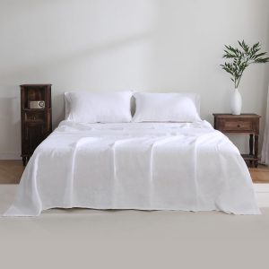 100% French Linen Sheet Set – Queen Size, 4-Piece (White)